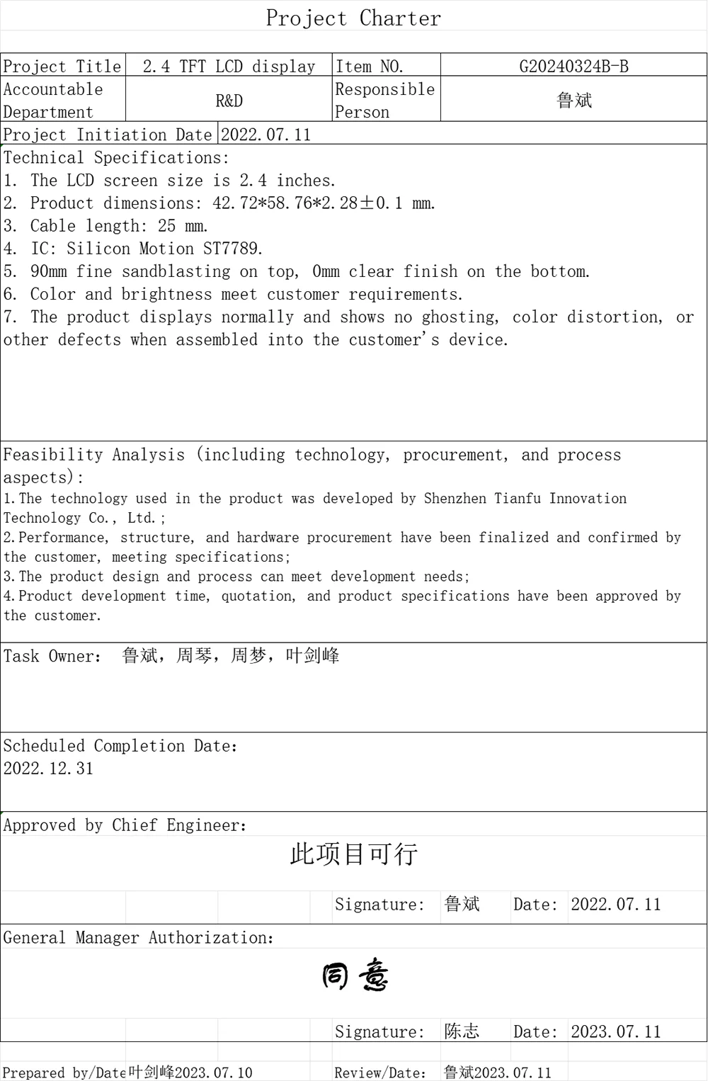 În calitate de furnizor și producător de LCD de lungă durată în China, TF s-a concentrat întotdeauna pe producerea de produse de înaltă calitate. Modulul de ecran LCD TN TFT de 2,4 inchi este compatibil cu microcontrolerele principale. Cu o luminozitate tipică de 280–300 cd/m² și un raport de contrast de 200:1.