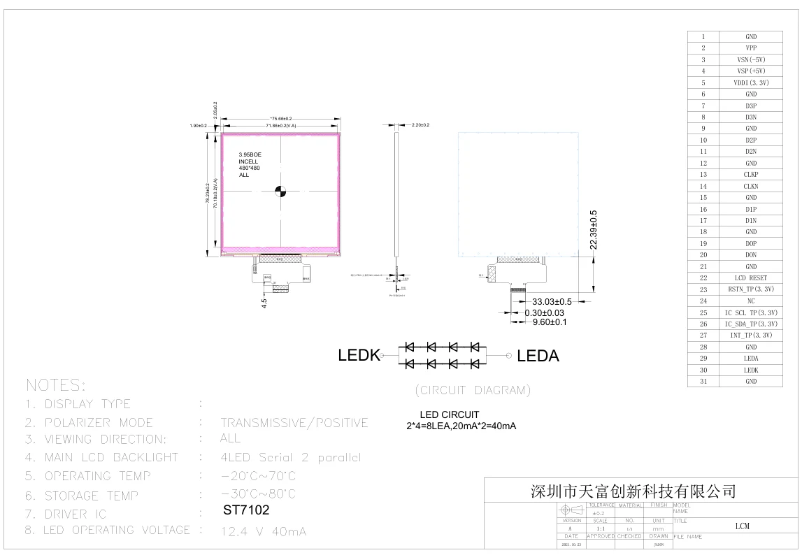 Modul LCD TFT de 3,95 inchi2